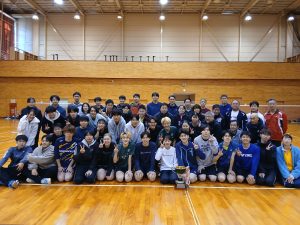 羽打ち会には58名が参加され、現役と試合をしたり、OB同士で羽根を打ったりと、現役の頃を思い出しながら、心地よい汗を流しました。OB対現役の結果は、OB16勝・引き分け10・現役8勝で、OBの勝利となりました。